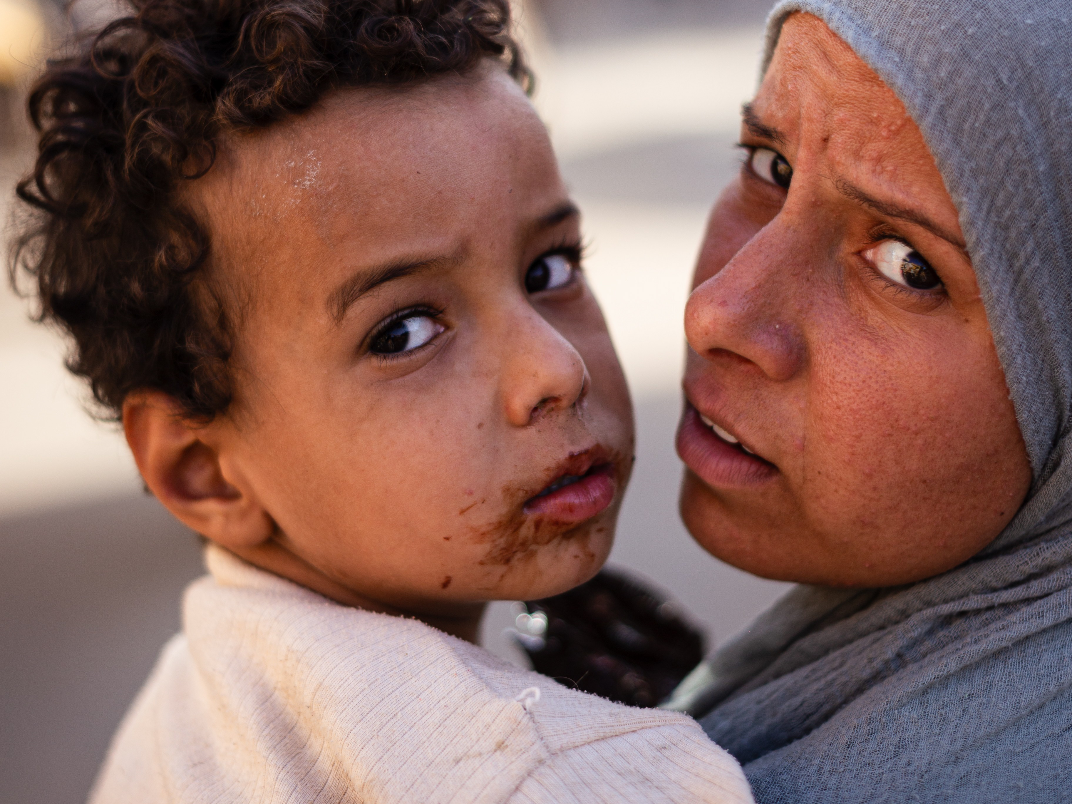 In the heat of Egypt, a pair of eyes can sometimes speak louder than a library. These faces are filled with both weariness and resilience. The naked voice of being human.